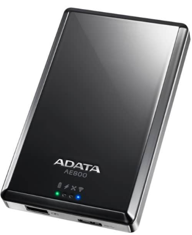 ADATA DashDrive Air AE800 500GB Wireless HDD & Powerbank - 500GB wireless external hard drive that also functions as a 5200mAh power bank. It supports wireless data streaming to multiple devices, allowing up to 3 users to stream 1080p video or up to 5 users to stream 720p video simultaneously. The device can connect to existing wireless networks and create an internet bridge, supporting up to 8 devices. It features a sleek design, supports USB 3.0 connectivity, and is compatible with iOS, Android, Windows, OS X, and Linux devices.
