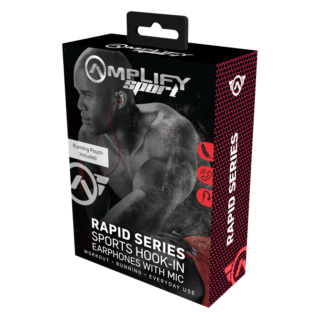 Amplify Sport Rapid Series Earbuds with Pouch - Black/Red