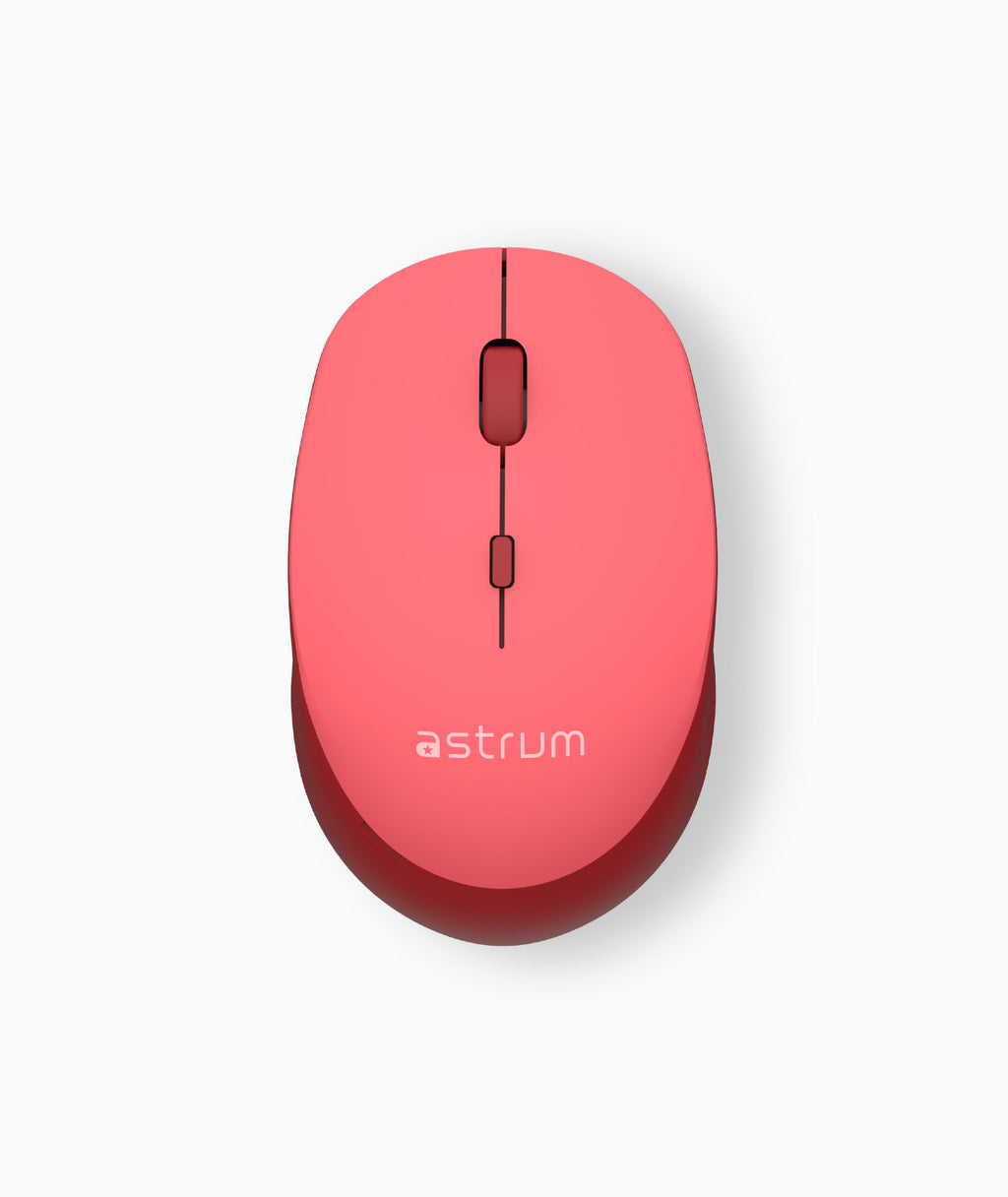 Wireless mouse in red with 1600DPI and 4-button control for precise navigation.