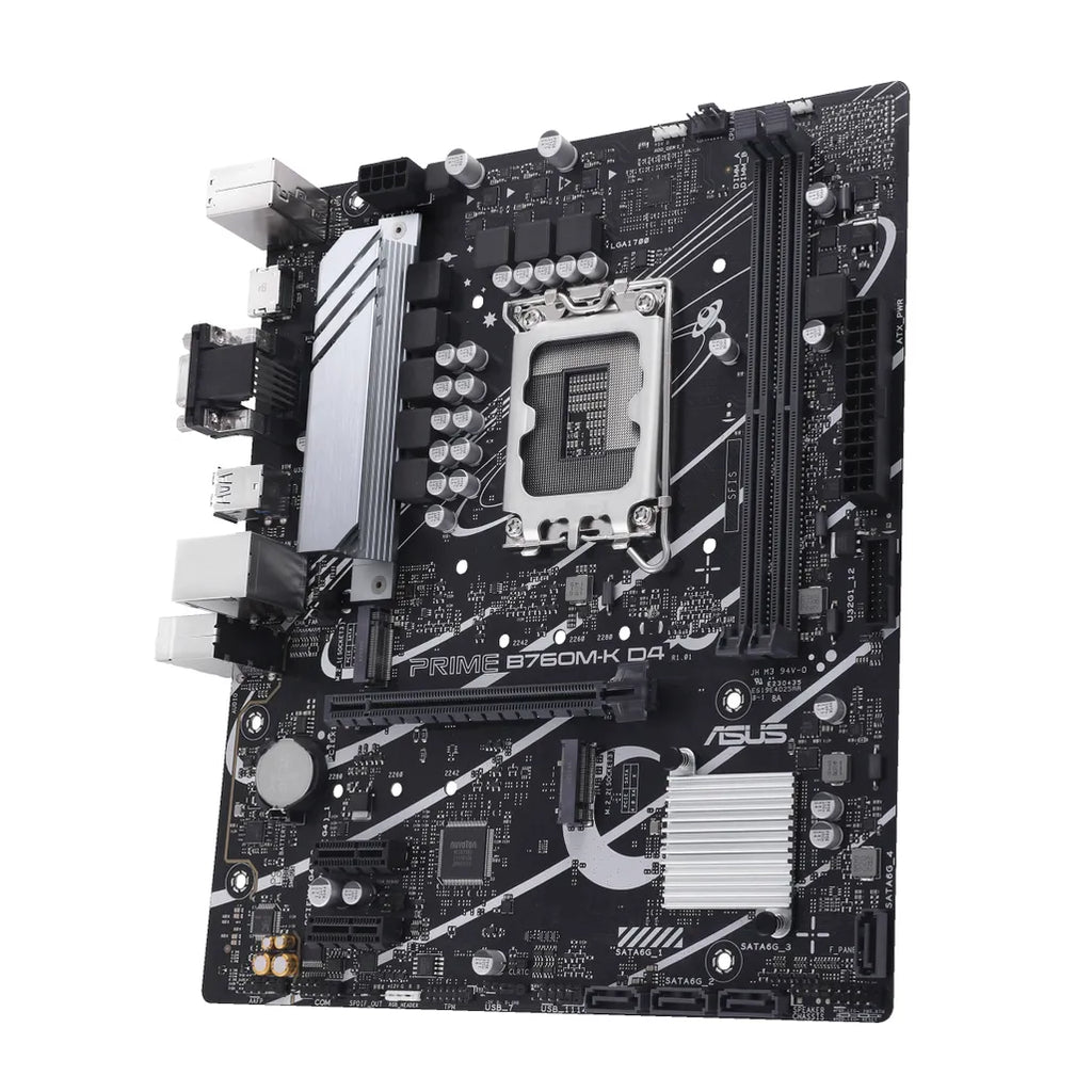 ASUS PRIME B760M-K D4. Processor manufacturer: Intel, Processor socket: LGA 1700, Compatible processor series: Intel® Celeron®, Intel® Core™ i3, Intel® Core™ i5, Intel® Core™ i7, Intel® Core™ i9,.... Supported memory types: DDR4-SDRAM, Maximum internal memory: 64 GB, Memory slots type: DIMM. Supported storage drive interfaces: M.2, SATA III, Supported storage drive types: HDD & SSD, RAID levels: 0, 1, 5, 10. USB connector type: USB Type-A. Ethernet