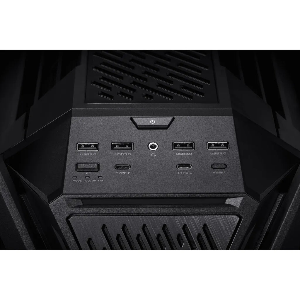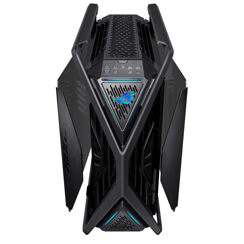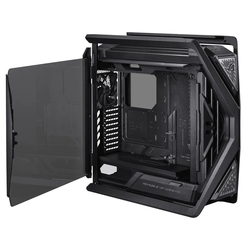 ASUS ROG HYPERION GR701. Form factor: Tower, Type: PC, Product colour: Black. Front fans installed: 3x 140 mm, Front fans diameters supported: 420,120,140,240,280,360 mm, Rear fans installed: 1x 140 mm. Supported HDD sizes: 2.5,3.5", SSD form factor: 2.5". Width: 268 mm, Depth: 639 mm, Height: 659 mm
