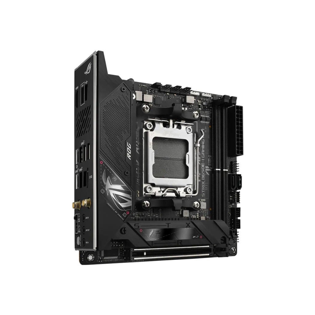 ASUS ROG STRIX B650E-I GAMING WIFI. Processor manufacturer: AMD, Processor socket: Socket AM5, Compatible processor series: AMD Ryzen™ 7. Supported memory types: DDR5-SDRAM, Maximum internal memory: 64 GB, Memory slots type: DIMM. Supported storage drive interfaces: M.2, SATA III, Supported storage drive types: HDD & SSD, RAID levels: 0, 1. Ethernet interface type: 2.5 Gigabit Ethernet, Top Wi-Fi standard: Wi-Fi 6E (802.11ax), Wi-Fi standards: 802.11a, 802.11b, 802.11g, Wi-Fi 4 (802.11n), Wi-Fi 5 (802.11ac), Wi-Fi 6 (802.11ax), Wi-Fi 6E.... Component for: PC, Motherboard form factor: mini ITX, Motherboard chipset family: AMD