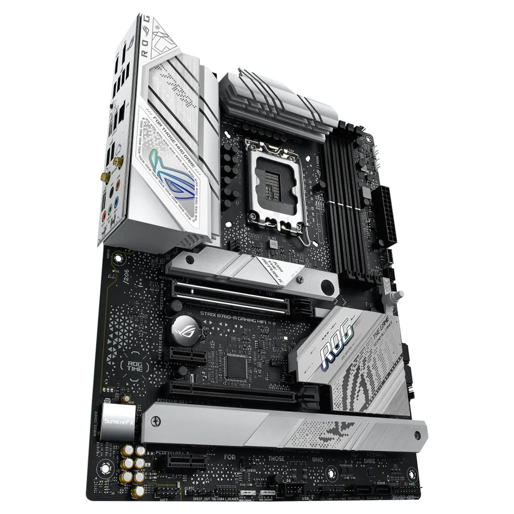 ASUS ROG STRIX B760-A GAMING WIFI. Processor manufacturer: Intel, Processor socket: LGA 1700, Compatible processor series: Intel® Celeron®, Intel® Pentium® Gold, Intel® Core™ i3, Intel® Core™ i5, Intel® Core™.... Supported memory types: DDR5-SDRAM, Maximum internal memory: 128 GB, Memory slots type: DIMM. Supported storage drive interfaces: M.2, SATA III, Supported storage drive types: HDD & SSD, RAID levels: 0, 1, 5, 10. Ethernet interface type: 2.5 Gigabit Ethernet, Top Wi-Fi standard: Wi-Fi 6E (802.11ax), Wi-Fi standards: 802.11a, 802.11b, 802.11g, Wi-Fi 4 (802.11n), Wi-Fi 5 (802.11ac), Wi-Fi 6 (802.11ax), Wi-Fi 6E.... Component for: PC, Motherboard form factor: ATX, Motherboard chipset family: Intel
