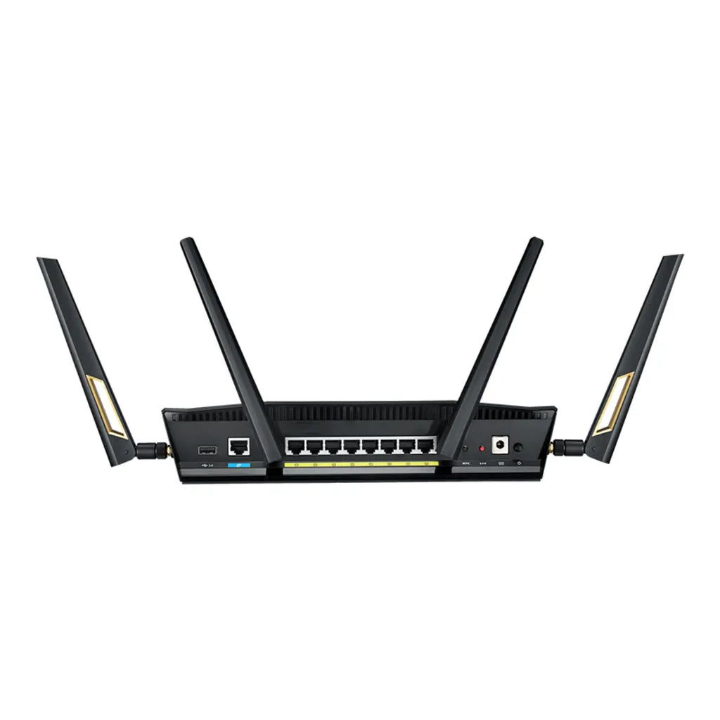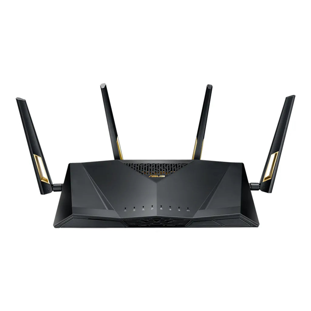 ASUS RT-AX88U. Wi-Fi band: Dual-band (2.4 GHz / 5 GHz), Top Wi-Fi standard: Wi-Fi 6 (802.11ax), WLAN data transfer rate (max): 4804 Mbit/s. Ethernet LAN interface type: Gigabit Ethernet, Ethernet LAN data rates: 10,100,1000 Mbit/s, Cabling technology: 10/100/1000Base-T(X). Mobile network generation: 4G. Security algorithms: WPA, WPA2, WPA2-Enterprise, WPA3. Product type: Tabletop router, Product colour: Black, LED indicators: LAN, Power, USB, WAN, WLAN, WPS