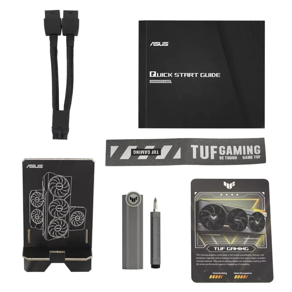 ASUS TUF Gaming TUF-RTX4070TIS-O16G-GAMING. Graphics processor family: NVIDIA, Graphics processor: GeForce RTX 4070 Ti SUPER. Discrete graphics card memory: 16 GB, Graphics card memory type: GDDR6X, Memory bus: 256 bit. Maximum resolution: 7680 x 4320 pixels. DirectX version: 12 Ultimate, OpenGL version: 4.6. Interface type: PCI Express 4.0. Cooling type: Active, Number of fans: 3 fan(s), Illumination colour: Multi