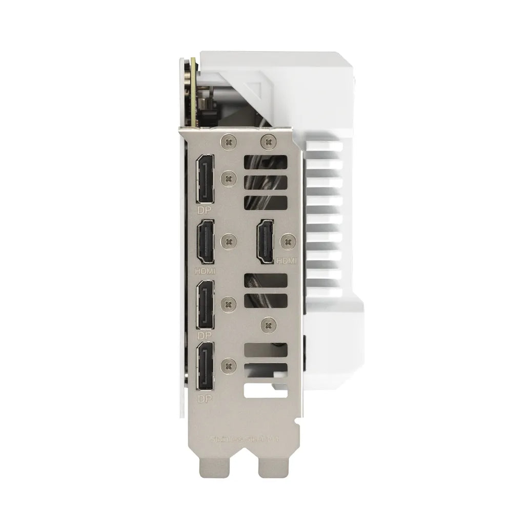ASUS TUF Gaming TUF-RTX4070TIS-O16G-WHITE-GAMING. Graphics processor family: NVIDIA, Graphics processor: GeForce RTX 4070 Ti SUPER. Discrete graphics card memory: 16 GB, Graphics card memory type: GDDR6X, Memory bus: 256 bit. Maximum resolution: 7680 x 4320 pixels. DirectX version: 12 Ultimate, OpenGL version: 4.6. Interface type: PCI Express 4.0. Cooling type: Active, Number of fans: 3 fan(s), Illumination colour: Multi