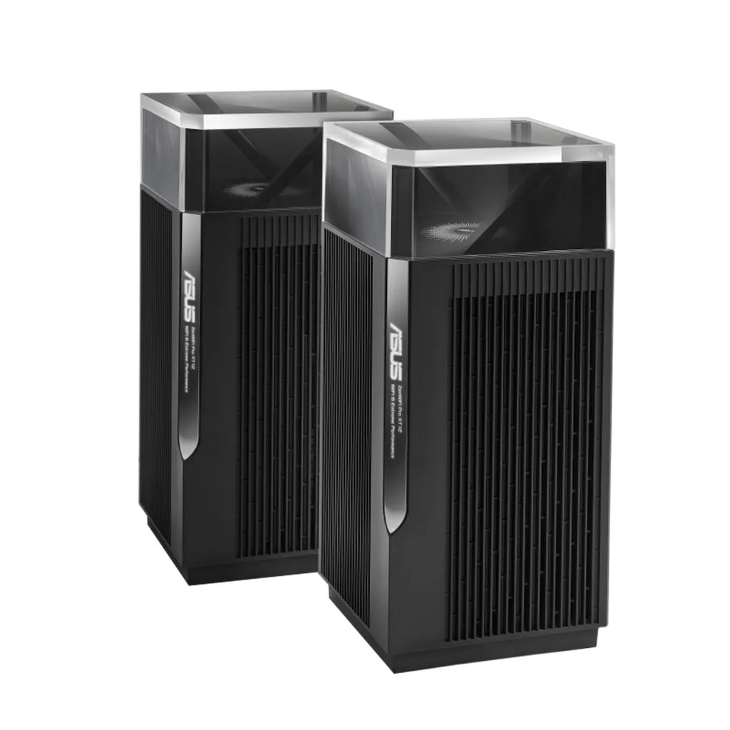 ASUS ZenWiFi Pro XT12 (1-PK). Product colour: Black, Antenna type: Internal. Wi-Fi band: Tri-band (2.4 GHz / 5 GHz / 5 GHz), Top Wi-Fi standard: Wi-Fi 6 (802.11ax), Wi-Fi standards: 802.11a, 802.11b, 802.11g, Wi-Fi 4 (802.11n), Wi-Fi 5 (802.11ac), Wi-Fi 6 (802.11ax). Processor frequency: 2 GHz, Internal memory: 1024 MB, Flash memory: 256 MB. AC adapter input voltage: 110 - 240 V, AC adapter frequency: 50 - 60 Hz, AC adapter output voltage: 19/19.5 V. Width: 115 mm, Depth: 115 mm, Height: 241 mm