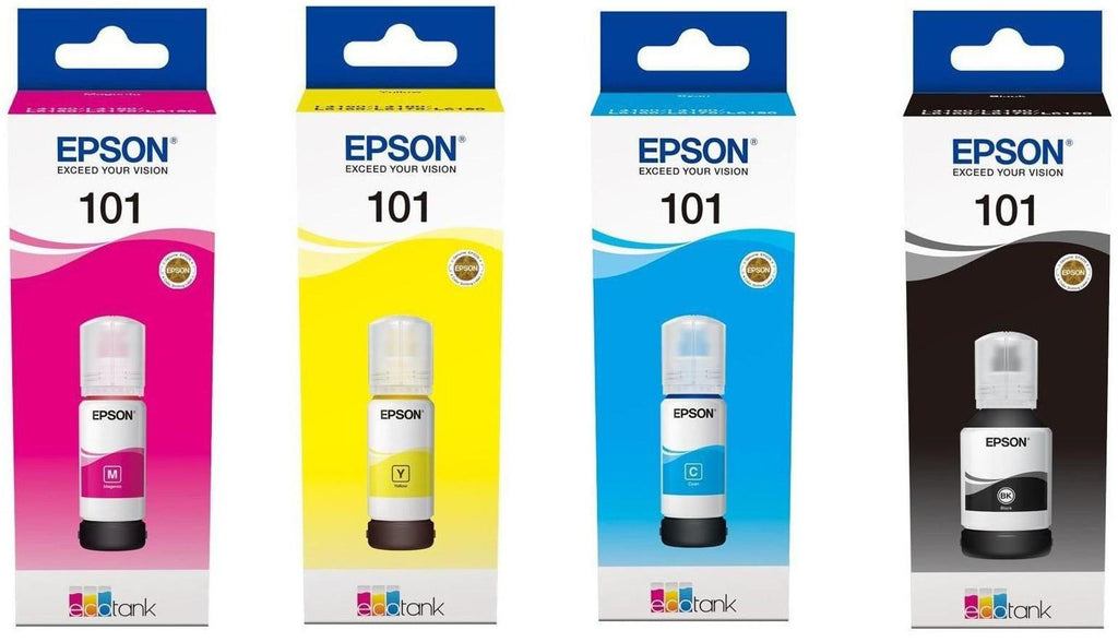 EPSON 101 BLACK / CYAN / MAGENTA / YELLOW 4 PACK INK BOTTLES