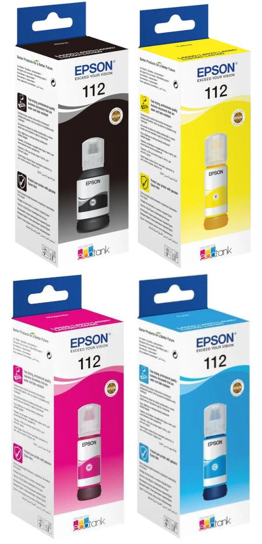 EPSON 112 BLACK / CYAN / MAGENTA / YELLOW 4 PACK INK BOTTLES