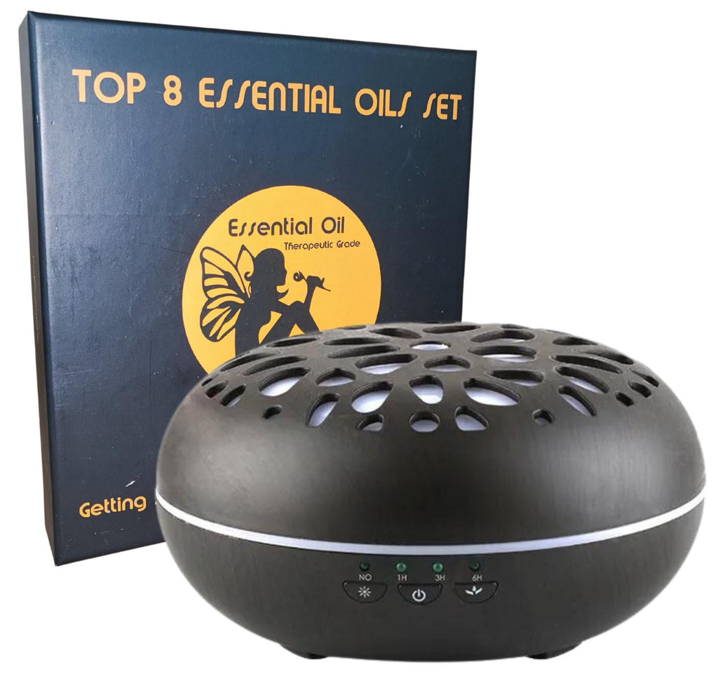 Transform your space into a peaceful oasis with this elegant diffuser and essential oil set.