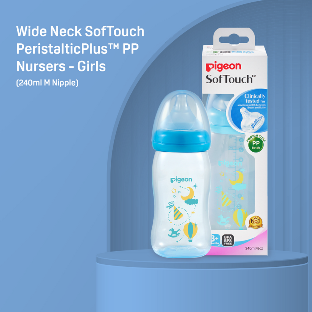 Pigeon Peristaltic Plus PP Bottle 240ml (M Hole) - Blue
