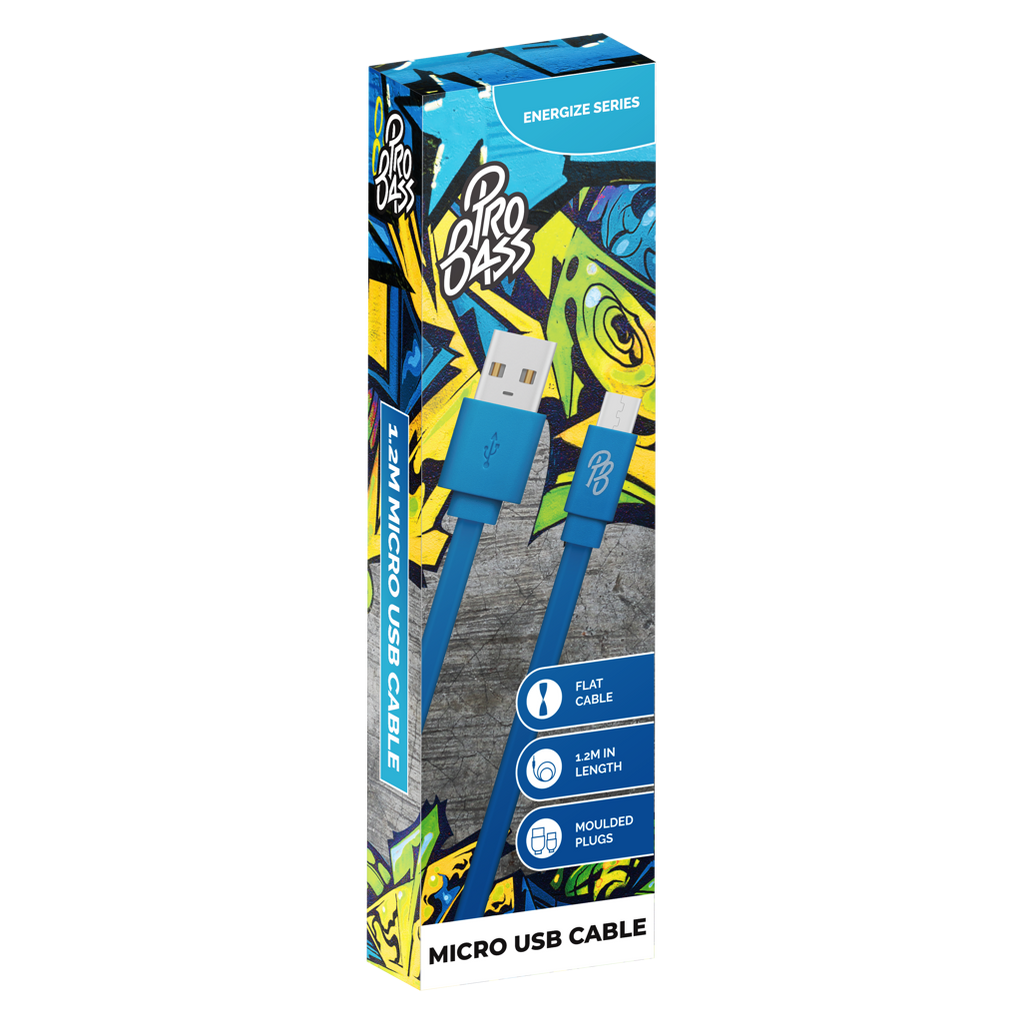 Pro Bass Energize Series Packaged Micro USB Cable - Blue 1.2m