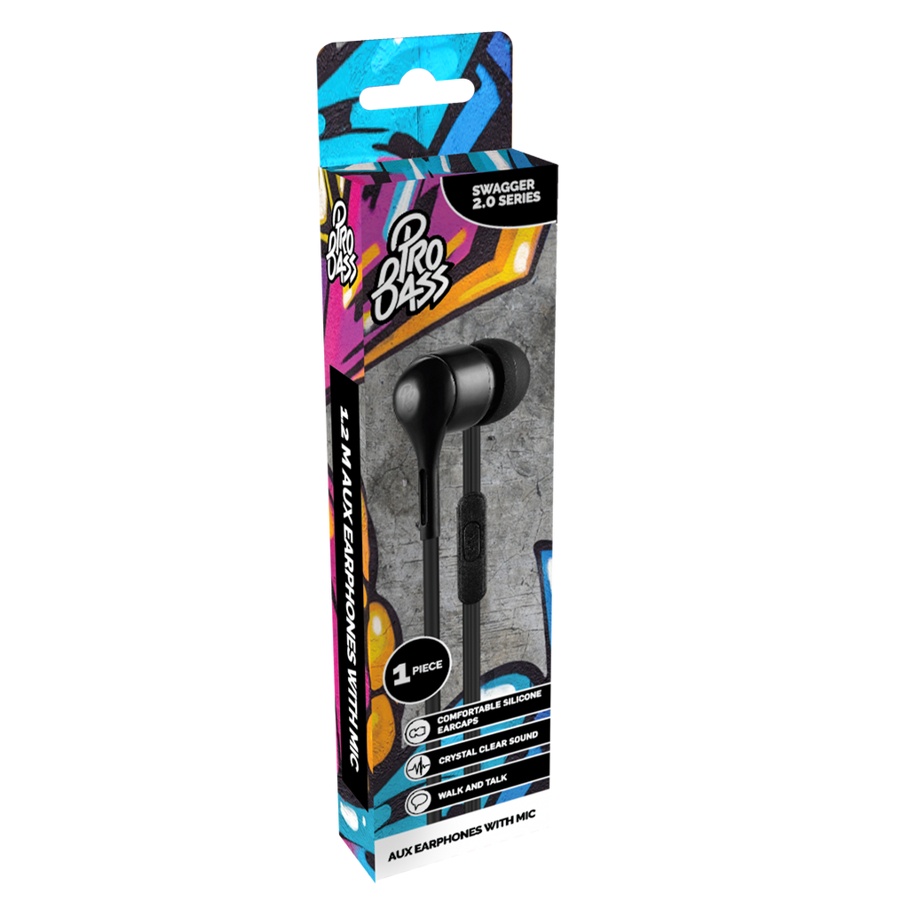 Pro Bass Swagger 2.0 Series - Boxed Auxiliary Earphone with Mic - Black