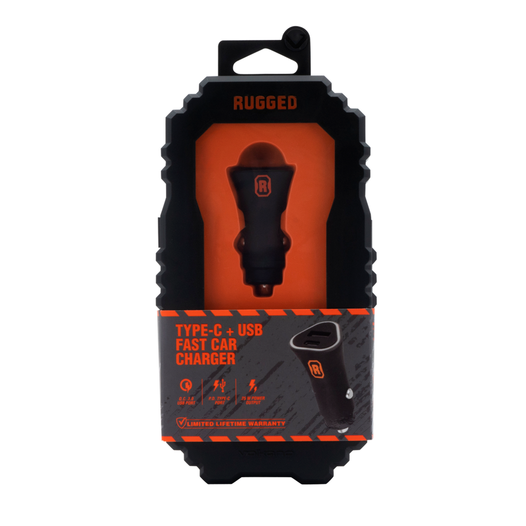 Rugged by Volkano Dual USB Car Charger with QC3.0 and PD