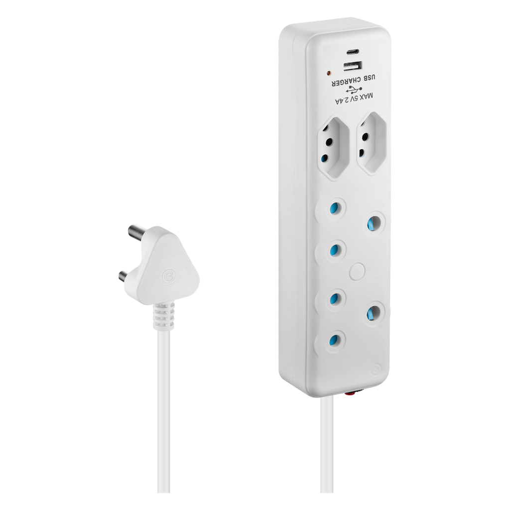 Switched 4-Way Extension Lead with 1x Type-C + 1x USB - 4m