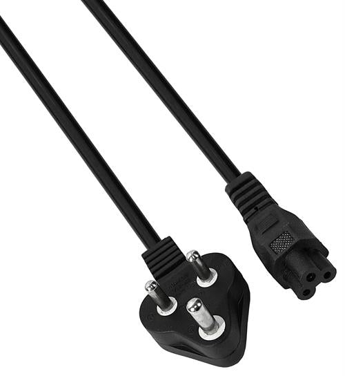 UniQue Standard Clover Leaf Power Cable 1.5m - Standard laptop power cable with 3-prong standard plug on one end and the clover shape connection on the other. Plugs into your Laptops power supply unit , OEM, No Warranty