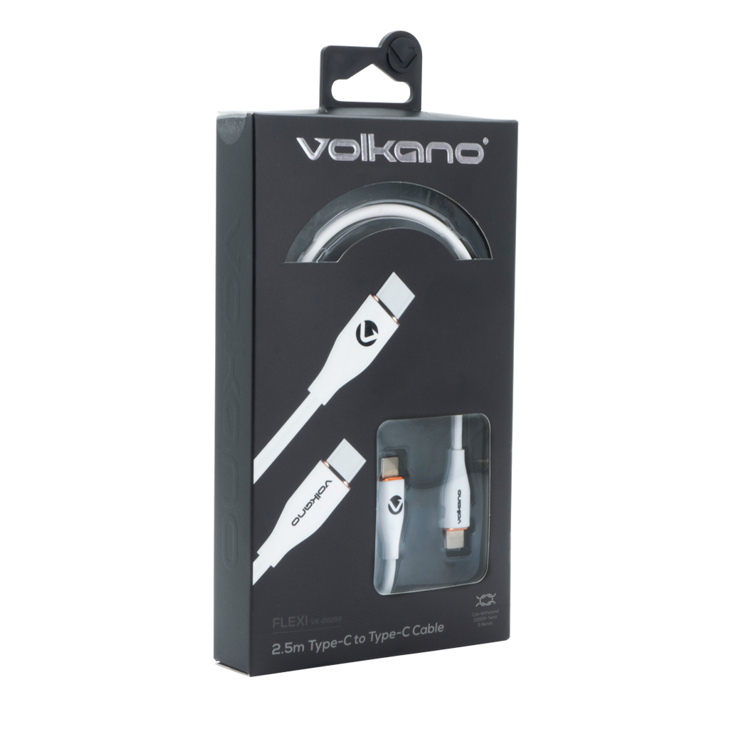 Volkano Flexi Series Type-C to Type-C 2.5m 60w - White