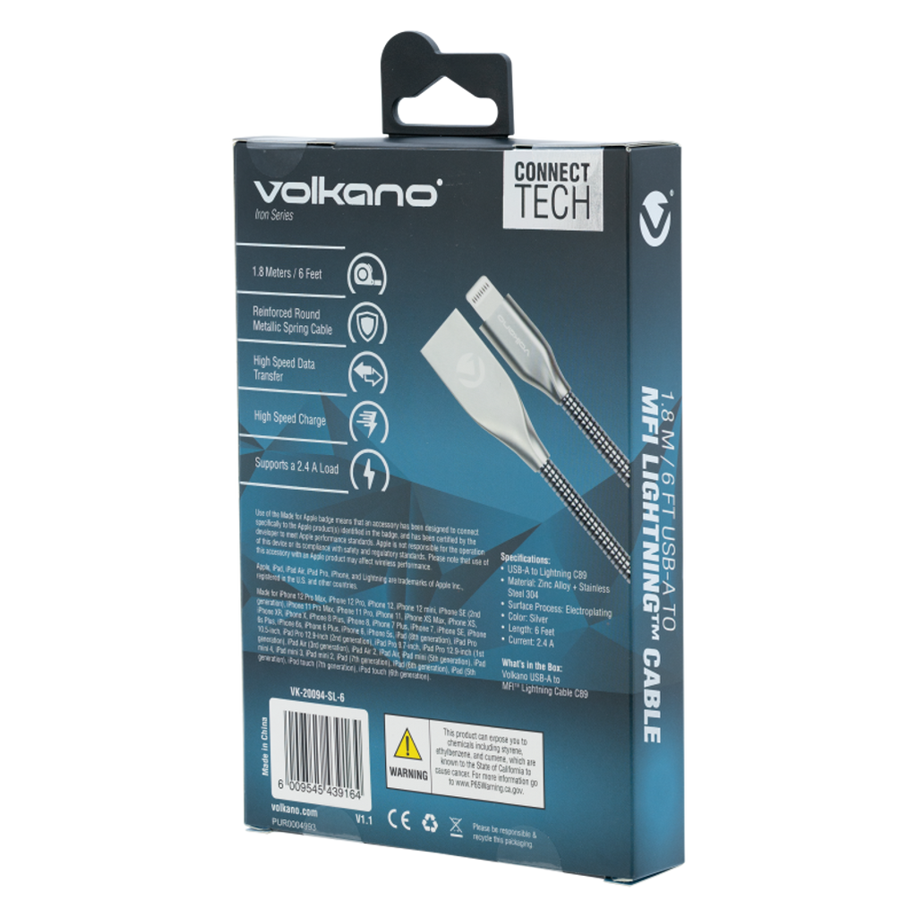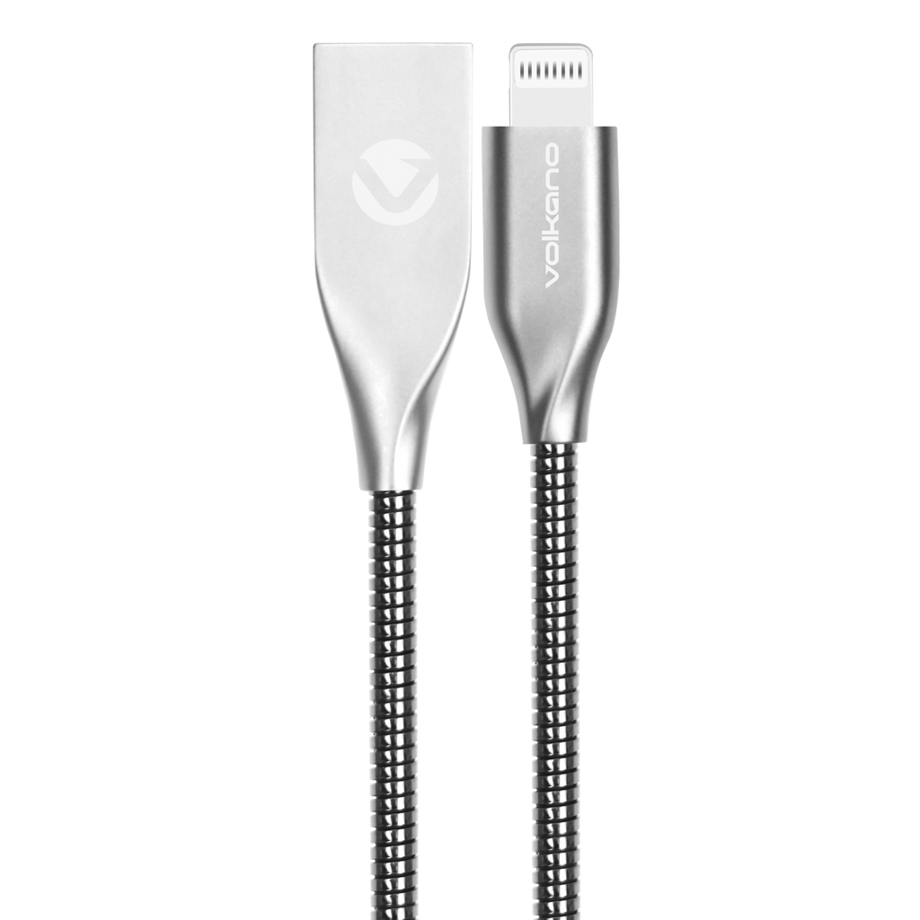 Volkano Iron Series Round Metallic Spring MFI Lightning Cable 6ft - Silver