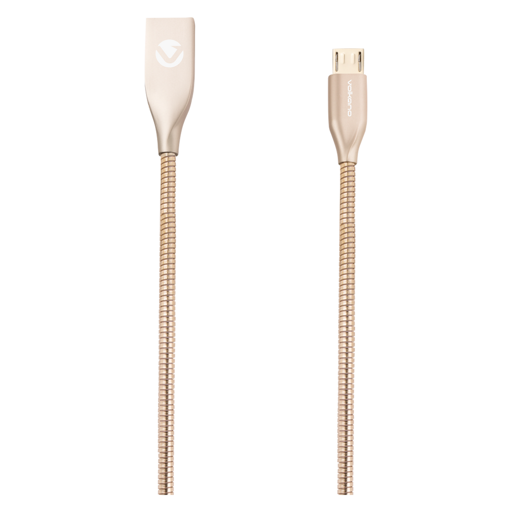 Volkano Iron Series Round Metallic Spring Micro USB Cable 1.2m - Champagne Gold