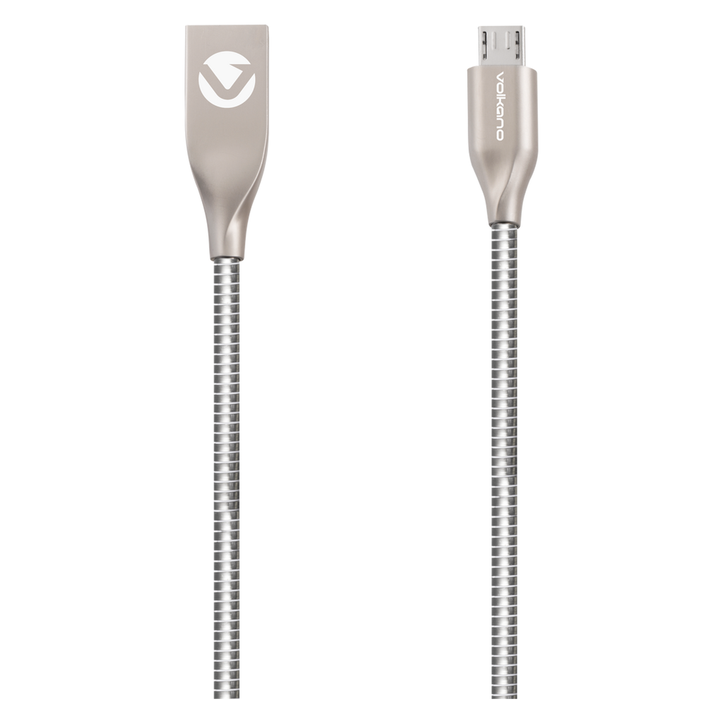 Volkano Iron Series Round Metallic Spring Micro USB Cable 1.2m - Silver