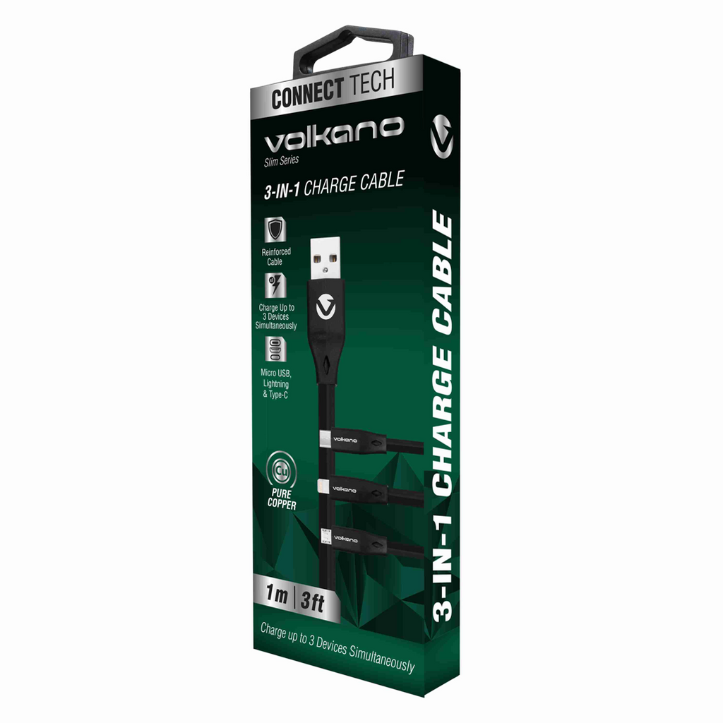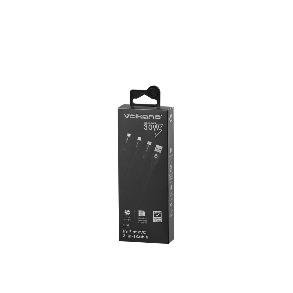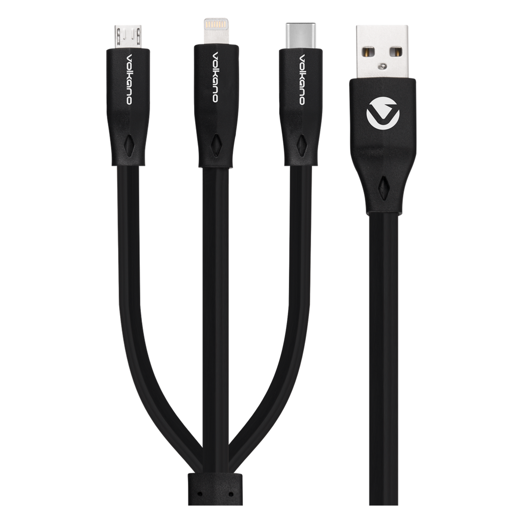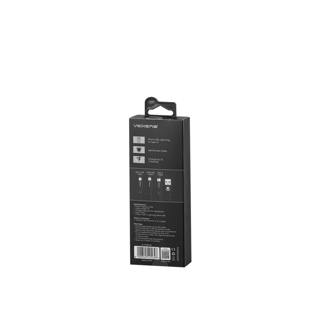 Volkano Slim Series Flat PVC 3-in-1 (Type-C / Lightning / Micro) Cable 1m - Black