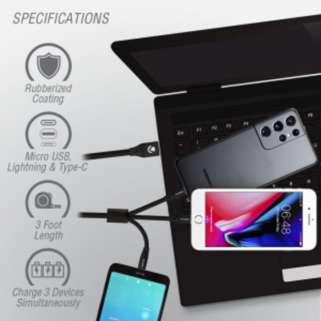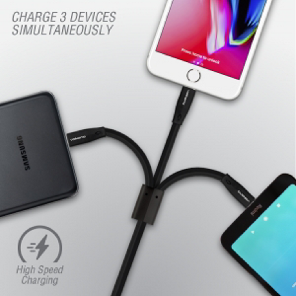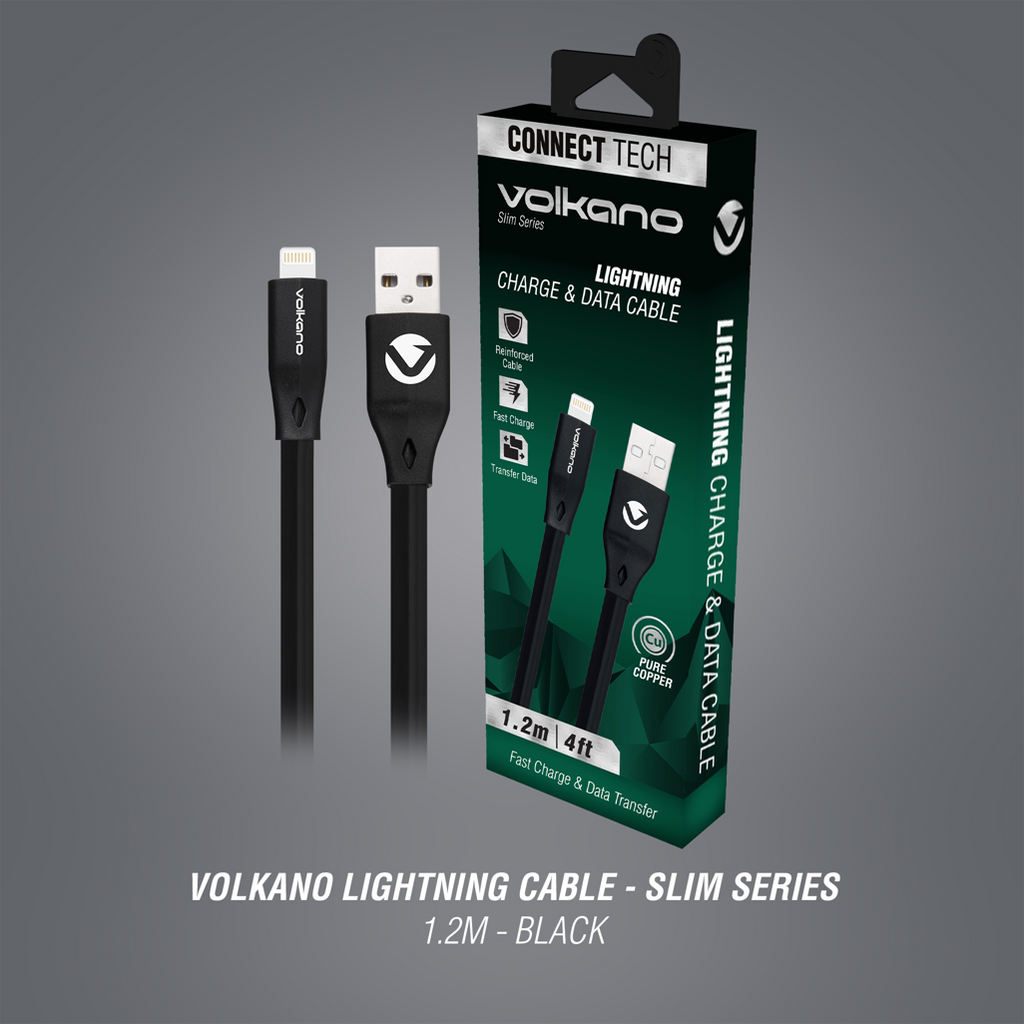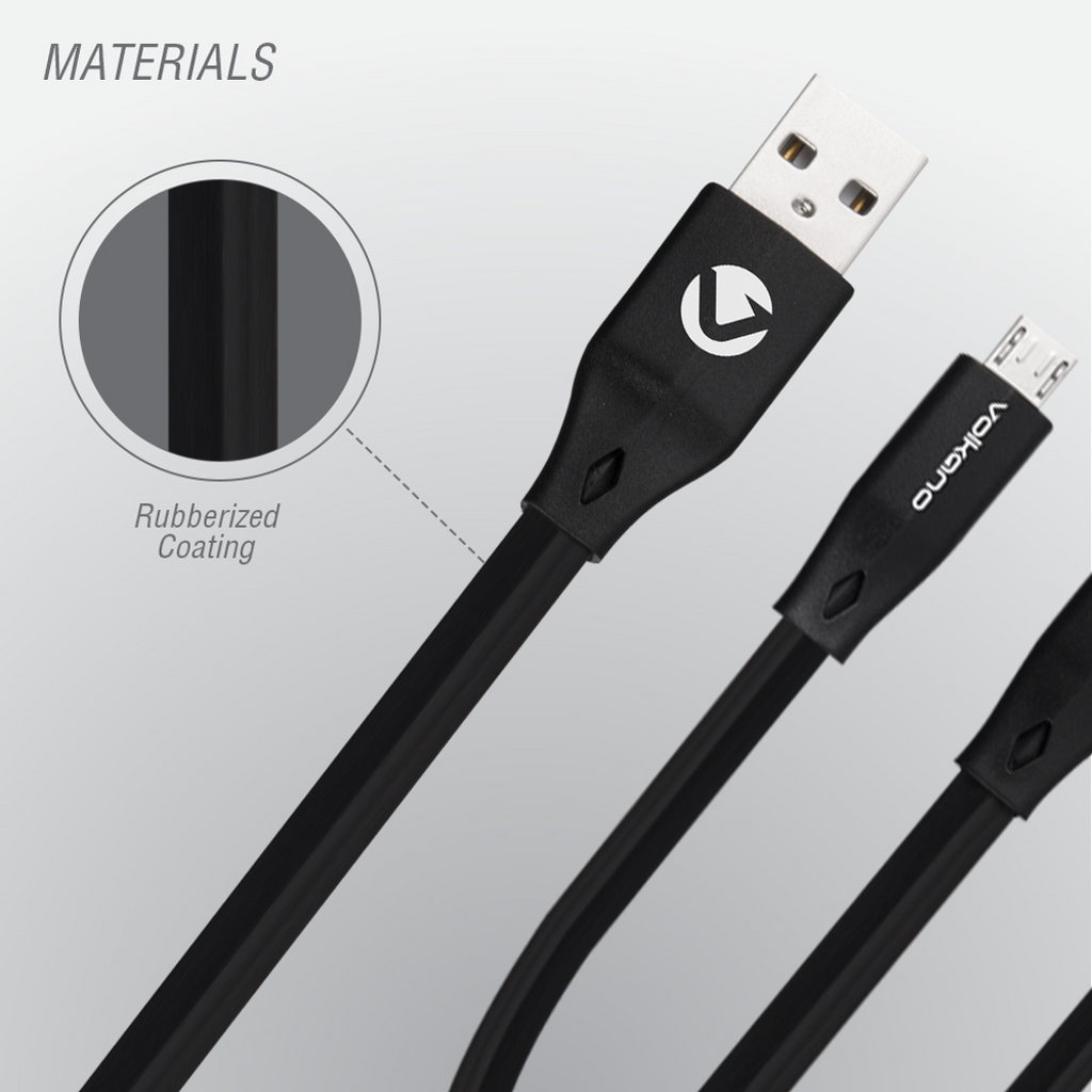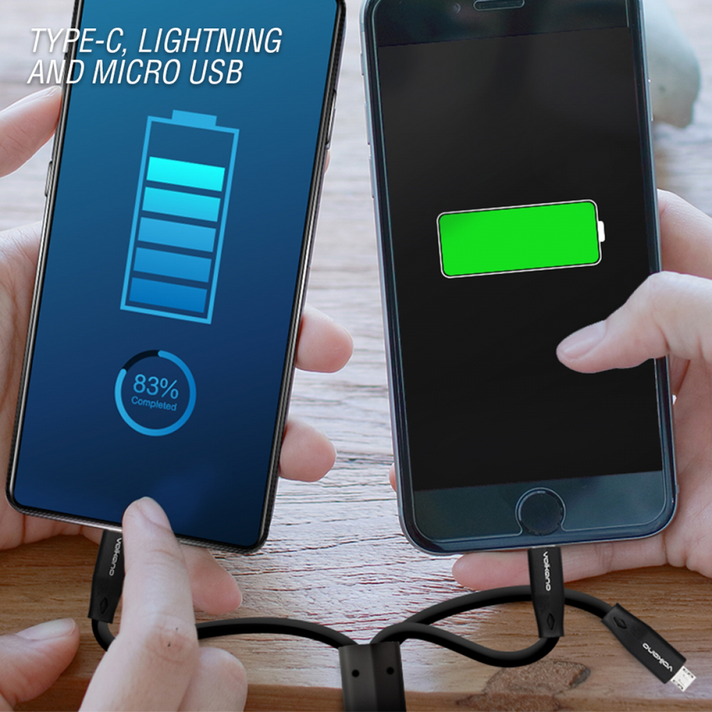 Volkano Slim Series Flat PVC 3-in-1 (Type-C / Lightning / Micro) Cable 1m - Black