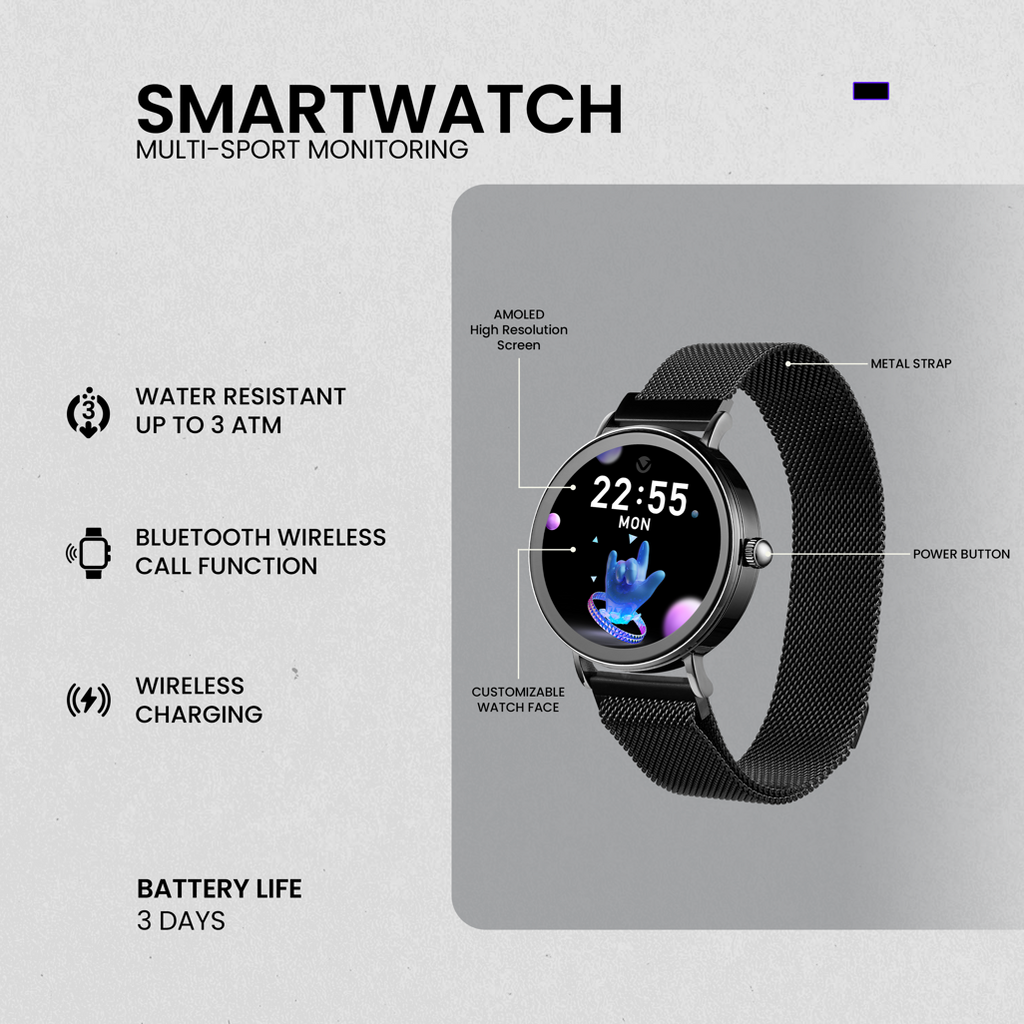 Volkano Valencia Series Ladies Smart Watch - Black