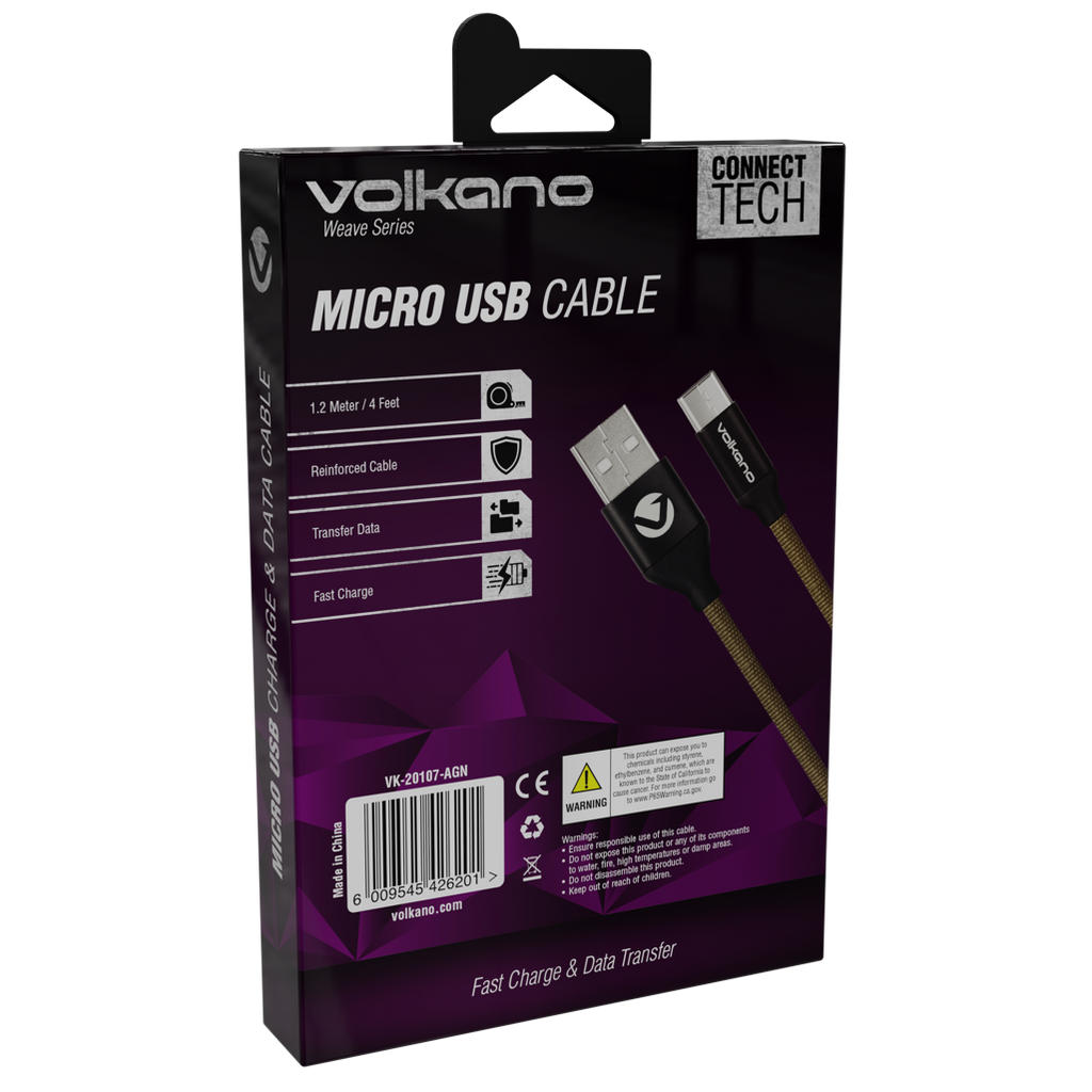 Volkano Weave Series Fabric Braided Micro USB Cable 1.2m - Army Green