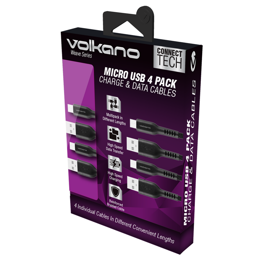 Volkano Weave Series Micro USB 4 Cable Pack - Black