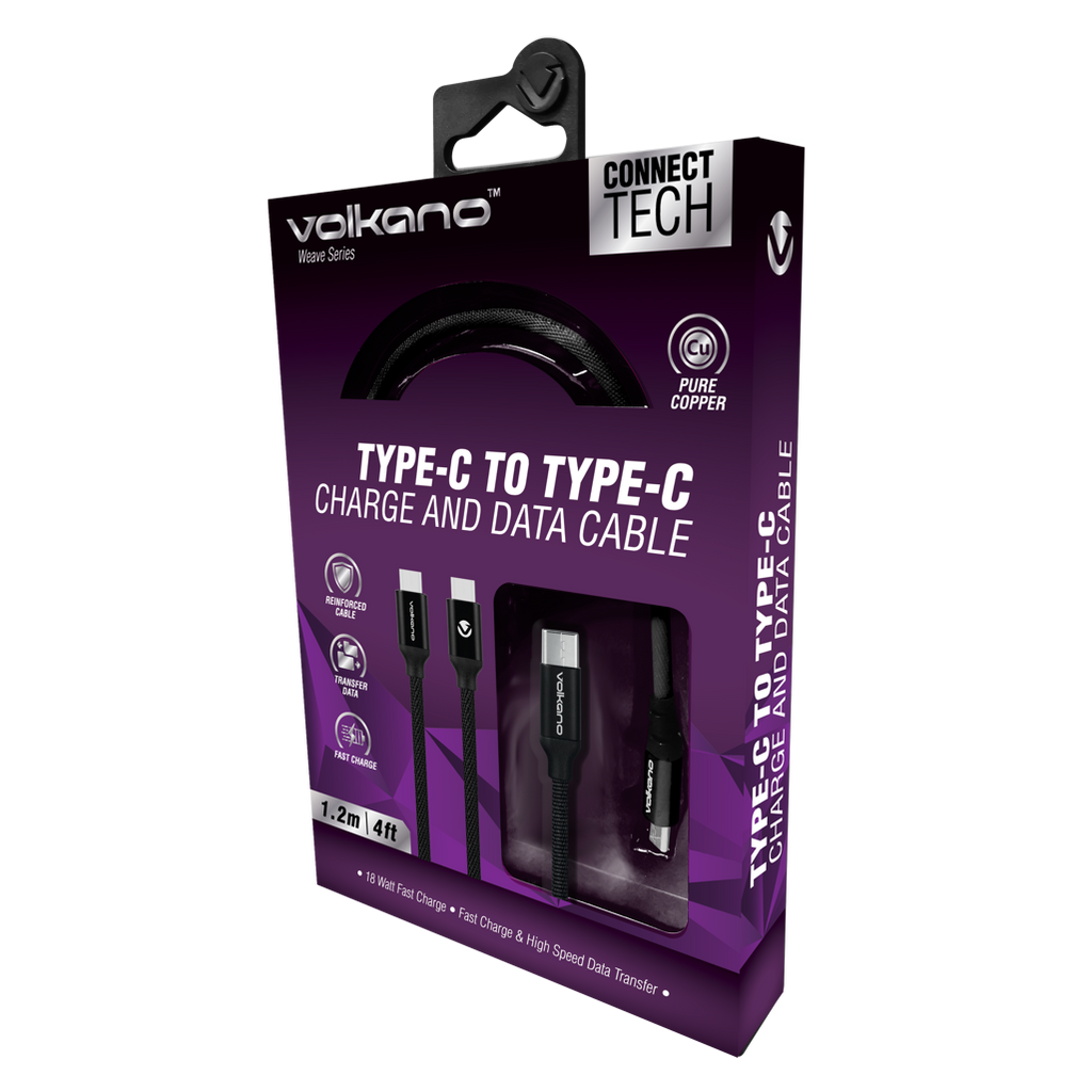 Volkano Weave Series Type-C to Type-C Cable (1.2m 60w) - Black